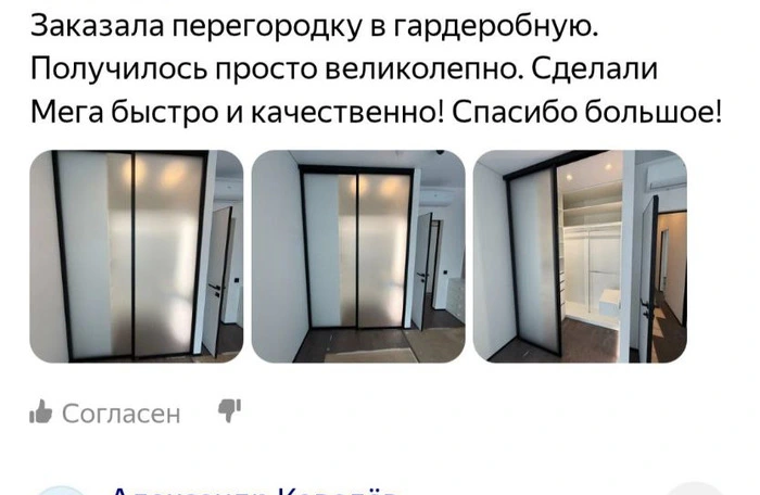 Мы верим, что работа должна приносить удовольствие! Для нас создание перегородок – это не просто процесс, а забота о людях, для которых мы это делаем. Этот проект был запущен 27 февраля, а уже 6 марта перегородка была установлена. Это отличный результат, особенно учитывая использование матового стекла Cristalvision 6мм, при стандартном сроке изготовления в 3 недели. Нам удалось не только завершить установку до финальной уборки, но и приурочить это к 8 марта! Возможность создавать комфорт для вас – наша главная цель!